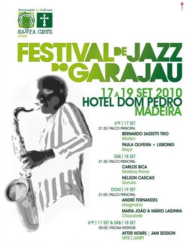 Na Madeira começa esta noite a primeira edição do Festival de Jazz de Garajau. Pelos jardins do Hotel Dom Pedro vai passar o trio do pianista Bernardo Sassetti, com Carlos Barretto (contrabaixo) e Alexandre Frazão (bateria), e o repertório de Motion (2010), já esta 6ªf, 17, a partir das 21.30. O segundo concerto desta noite, no Festival de Jazz de Garajau, dá a conhecer o novo projecto da cantora Paula Oliveira, com o colectivo LisBones- com Leo Tardin (piano), Bernardo Moreira (contrabaixo), Bruno Pedroso (bateria), Lars Arens (trombone e arranjos), Claus Nymark (trombone), Luís Cunha (trombone) e Rui Bandeira (trombone). Raça, o novo disco já gravado pela cantora e os LisBones, inclui composições de Mário Laginha, Lars Arens, Leo Tardin, Ricardo Dias e da própria cantora. Esta 6ºf, 17, no Hotel Dom Pedro, Garajau.