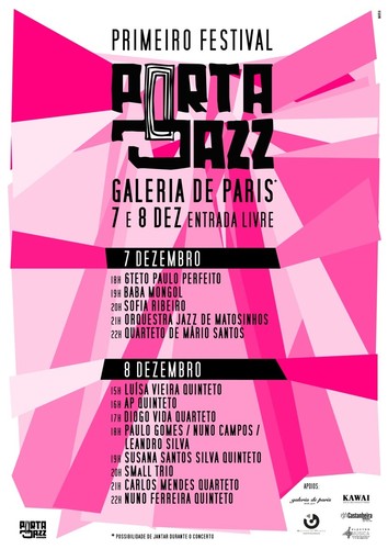 O Primeiro Festival Porta-Jazz dá início às actividades da Associação, com 13 formações ao vivo, hoje e amanhã, na Galeria de Paris do Porto, R. Galeria de Paris, 56.