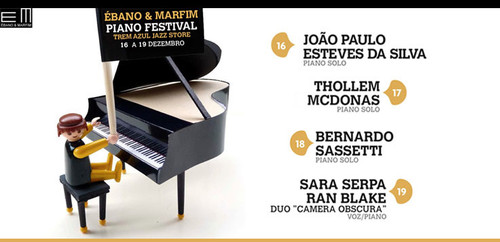 É a primeira vez que a Trem Azul abre o seu espaço a um festival centrado no piano. Quatro noites e quatro pianistas muito diferentes sucedem-se, a partir de hoje, para o Ébano & Marfim Piano Festival, na Rua do Alecrim, a começar por João Paulo Esteves da Silva, pianista com um longo percurso no jazz, na música popular e clássica. Recentemente lançou Memórias de Quem (2007), Scapegrace, com Dennis González (2009) e White Works (2010). Está ao vivo a solo, esta 5ªf, 16, na Trem Azul Jazz Store, às 21.30.