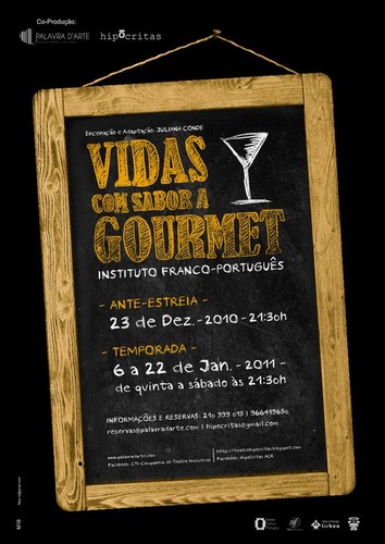 No palco do agora renomeado Instituto Francês de Portugal continua em cena Vidas com Sabor a Gourmet, peça que explora a forma como cozinhamos as relações humanas. Criação colectiva a partir de textos de Nathalie Sarraute, Yasmina Reza e Mário Henrique Leiria, entre outros. De 5ª a sábado, às 21.30, até 22 de Janeiro.