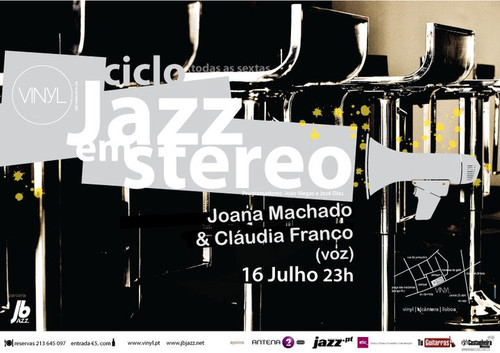 Por fim, o Vinyl acolhe mais uma noite de Jazz em Stereo, desta vez com duas cantoras: Joana Machado, que tem já dois discos editados, Joana Machado (2008) e A Casa do Óscar (2009), e Cláudia Franco, que prossegue os seus estudos na Escola Superior de Música de Lisboa, depois de ter frequentado a Escola do Hot Clube. A voz como instrumento estará hoje no centro das atenções, a partir das 23h, em Alcântara.